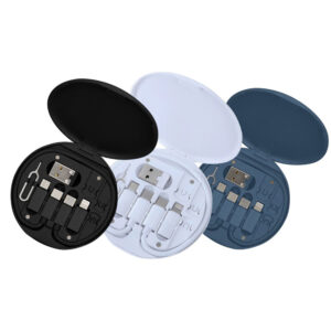 Multi-cable set with charging cables for all your essential connections: Type C, Lightning, micro USB and USB. Also comes with an ejector pin and 3 storage slots for micro SIM, nano SIM and TF SIM cards.