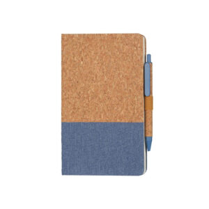 eco friendly notebook made from a combination of linen and cork materials. Also includes a matching eco friendly pen made from Cork and Eco-Friendly Wheat Straw. Packed in a Eco-Friendly Gift Box.