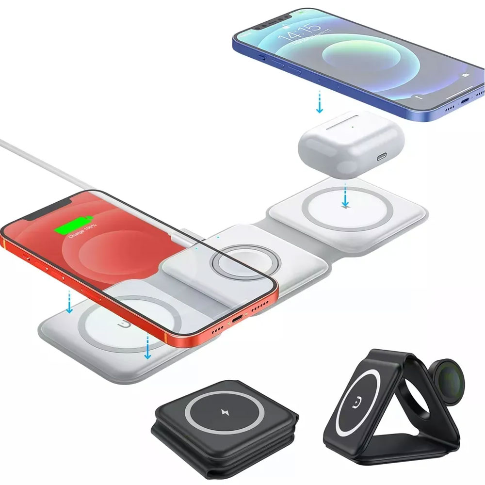 15W Fast Wireless Charging Holder Stand Dock 3 In 1 Qi Foldable Magnetic Magsafes